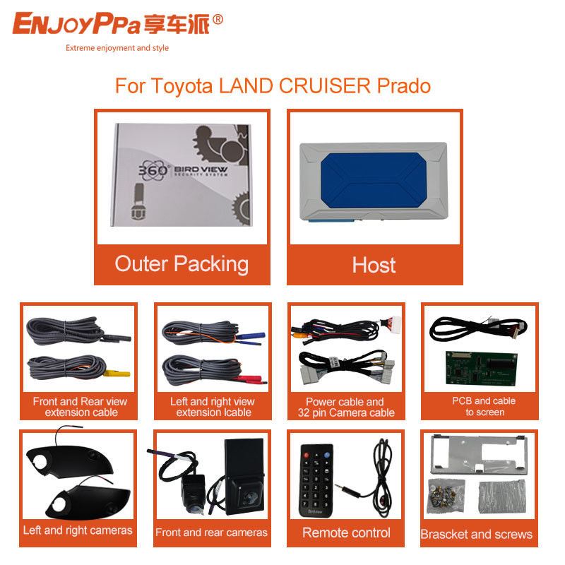 Avec nos services de personnalisation de produits, vous pouvez améliorer votre expérience de conduite Toyota avec la dernière technologie.Le système de caméra de voiture 360 de enjoyyppa offre une vue panoramique de votre environnementCe système est conçu et fabriqué en Chine et est compatible avec les modèles Toyota, ce qui en fait un choix idéal pour les propriétaires de Toyota.